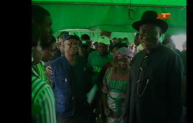 President Jonathan waiting to be accredited at Ward 13 in his Otueke home town Bayelsa State #NigeriaDecides